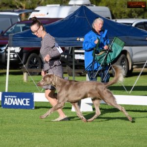 Just under top height that can be with excellent proportions ofbody despite the height she is still very feminine. Nice head and neck. Excellent angulation front and rear. Very nice deep chest Excellent topline and tail well set-up - JUNIOR IN SHOW